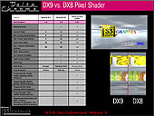 VIA Technologies/S3 Graphicsは1月7日,DirectX 9世代のGPU「DeltaChrome」を年内にリリースすることを明らかにした。今回それとは別件で,S3のWebサイトに掲載されている以上の詳細な情報をVIA Technologiesより入手することができたので,ここに報告したい。 ■0.13μmプロセスルールで製造,スペックはRADEON9700に肉迫する?! DeltaChromeは,デスクトップPCとノートPCの双方をターゲットにしたGPUだ。0.13μmプロセスルールで製造され,しかもそのロジックはHighVT(省電力)トランジスタで構成されていることから,最大パフォーマンスよりは省電力性能を求めたものとなっていると推察される。 コアクロックは300MHz,メモリバス幅は128ビットで,600MHz DDR SDRAMを最大256MBまでビデオメモリとして利用できる。コアクロックについては最大20%Upの360MHzバージョンも,市場の要求があればリリースすることがあるとのことだ。 そしてハードウェアの性能として気になるのは,プログラマブルシェーダのポテンシャルだろう。DeltaChromeのプログラマブル頂点シェーダ,プログラマブルピクセルシェーダは,共にDirectX 9の規定するバージョン2.0に完全対応する。つまり浮動小数点フォーマットの実数ピクセルにも対応し,高度な4段従属テクスチャ参照も可能というわけで,ビジュアル表現能力についてはATI RADEON 9700やNVIDIA GeForce FXと同等ということになる。 実際には,バージョン2.0命令セットのほかS3独自のシェーダ命令を実装しているため,NVIDIAがGeForce FX発表のときに使ったキーワードである「2.0+」も用いている(画面左下参照:ガンマ補正命令を利用したデモ映像だ)。 頂点シェーダユニットは4基,ピクセルレンダリングパイプラインは8本と,これもRADEON 9700と同等だ。テクスチャユニットは各パイプ1基のみで,1パス内で複数回テクスチャユニットを利用することでマルチテクスチャリングを行う。これもRADEON 9700と同じやり方だ。 ちなみに,本記事の右上の図がプログラマブルピクセルシェーダの比較表。DirectX 9以上の命令セットについては,DirectX 10にてインプリメントするようにMicrosoftに働きかけているという。そしてその左の画面が,プログラマブル頂点シェーダの比較表だ。GeForce FXに迫る命令セットを持つことが分かるだろうか。Dynamic Flow Controlとは,パラメータ制御のジャンプ,ループ制御を行うということで,これをサポートするのは現在GeForceFXのみだ。オマケで左上の図が,DeltaChromeのコア・ブロックダイアグラム。「DirectX 9世代のGPU」らしい内部構成で,RADEON9700にかなり似ている。 ■適応型テッセレータユニットはなし,ディスプレースメントマッピングには未対応 DirectX 9世代GPUというと,もう一つ気になるのが適応型テッセレータユニットの有無。これを搭載しているのはATI RADEON 9700とMATROX Pahelia512のみで,昨年末,対RADEON 9700の本命GPUとして発表されたNVIDIA GeForce FXにはこのユニットは省略されていて物議を醸した。 DeltaChromeではどうなのだろうか。 これについては,やはりDeltaChromeも「省略」の道を選択した。理由はNVIDIAと同様の「ゲームなどで使われにくい機能だと思われるから」だ。 また,DeltaChromeは冒頭でも述べたようにノートPC用をフォーカスして開発されたという経緯もあって,余計なロジックの搭載は避けたかったから……という理由もあると思われる。いずれにせよ,ディスプレースメントマッピング機能もDeltaChromeでは実現されない。 ディスプレースメントマッピングはDirectX 9世代GPUの目玉の機能であったはずなのだが,次々と発表されるDirectX 9世代のGPUの対応がここまで冷ややかだと,ゲームベンダーなどもこの機能を積極的に活用しない風潮が浸透してしまうかもしれない。 なおDeltaChromeの次期世代GPU,開発コードネーム「DESTINATION FILMS」では,適応型テッセーレータは搭載される見込みだとのこと。 ※右下の図がDeltaChromeシリーズのロードマップ。次期GPU「DESTINATION FILMS」では,HIGH ORDER Primitivesがサポートされる。これが適応型テッセレータの搭載を意味するわけだ ■性能はRADEON 9700に追従する? DeltaChromeの3Dグラフィック機能面で,もっともエポックメイキングなのが「Advanced Deferred Rendering」だ。 Zバッファを階層管理するHierarchical Z Bufferをハードウェアサポートし,Z隠面消去を前から後ろだけでなく,後ろから前へも行う方式をサポート,さらに1パス目でシーンの複雑性を吟味,2パス目でこの情報を元にZバッファのトラフィックを抑えてレンダリングするという「2パスDeferred Renderingモード」を実装する。木々や建物が立ち並んたフィールドを複数のキャラクターが動き回るような複雑なシーンでも効率よくレンダリングできるということであり,シーンの複雑度の違いでフレームレートが変わるような状況を低減させる効果が期待できる。またおそらくこれは,ベンチマークソフトを動かしたときも効果的に働く機能となるはずだ。 このほか,DeltaChromeはD端子出力をGPUとしては世界で初めて正式にサポートする(Hi-Def HDTV Encoder機能)。720Pや1080iといったハイビジョン対応テレビがあれば,気軽にゲーム