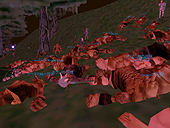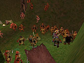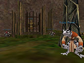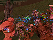 日本語版がサービスインされている「エバークエスト日本語版」。発売を間近に控える拡張パック「ザ・レガシー・オブ・イキーシャ日本語版」への布石として,先週末土曜日(4月19日)の14時からイベントが行われた。英語版プレイヤーならすでにご存知であろう「トロルの街"グロッブ"の陥落」だ。フロッグロック族によるトロルの街侵攻イベントで,以降トロルは,(基本的に)グロッブの街は使えなくなる。まぁGood種族にしてみればGukの近くに拠点ができるので,とりわけ中級レベルの冒険者にとっては,ある意味"嬉しいこと"といえるかも。 一プレイヤーとしてトロルキャラクターを作って参加しようかとも思っていたのだが,Killされてばかりでも仕事にならないので,外から眺めるだけの立場としてイベントに参加。事前にこっそり知らされていた14時を目処に,Innothule Swamp(イノシュール沼)へと向かった。 現場に到着してみると,いるわいるわトロルの大軍……Evilつながりのキャラクターや,死を覚悟して1stキャラで加勢に来ているキャラクター,単なる見物人など,瞬間とはいえゾーン内に150人前後。写真撮影にいい位置を探しながら,カエルの侵攻をじっと待つことに。 そして14時30分ごろ,Guk,Sroあたりのゾーン際から続々とフロッグロックが侵攻開始。原色の,やたらカラフルなカエル達が,数匹ずつの部隊で矢継ぎ早に襲い掛かってきた。Warrior系,Caster系などタイプも多種多様だ。防衛部隊も善戦するも,その数の暴力(しかもカエルはなかなかLv高し)の前にあえなく散り,数時間後にはついにグロッブは陥落してしまった。 トロルのガードが見物人をKillしたりというハプニング(いや,しようがないことではあるが)もあったし,単にカエルが攻め込んでくるだけでややメリハリに欠けたイベントではあったが,イベントそれ自体はつつがなく進行,拡張パックの発売へのカウントダウンが始まった感じだ。 例によって詳細なレポート形式ではないが,(旧テクスチャで申し訳ないけれど)画面写真で雰囲気の片鱗でも感じ取ってほしい。一番左の縦列3枚は,グロッブ陥落後のGukta(新しい街の名前)の中の様子。名前の頭に"Guide"とついたNPCはガイド係で,話しかけると行きたい施設まで案内してくれるので,Good系のキャラクターを持っているプレイヤーは一度訪れてみてはどうだろう。 ところでエバークエスト総合サイト「EQI - An EverQuest Island」さんの「ファイル投稿BBS」に,"自称防衛隊記録係"さんの手による報告レポート(というか体験記?)がアップされている。全5章に渡る長い手記だが,全貌を把握したい方はそちらも併せてどうぞ。ログ引用などもして丁寧に記録されており,読み応えあり。(Kazuhisa)