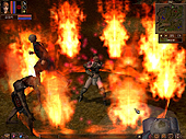 Kimの韓国最新ゲーム事情#125 「Lineage2」のライバル作品登場?(2003/7/10) Text by Kim Dong Wook特派員 「Lineage2」は7月9日からオープンβテストが行われており,プレイヤーたちの評判はかなりいいようだ。そうした中,「Lineage2」の強力なライバルになるのでは? と話題になっているタイトルがある。それがTeam May社が開発し,現在クローズドβテストが行われている「Laqia」(ラキア)だ。 「Laqia」には,従来の韓国産MORPGには見られない興味深い点が多い。画面はクォータビューが基本とはなっているものの,トップビュー表示もできるようだ。もちろん,プレイ時には画面の回転,拡大/縮小もできる。職業は固定のクラスは用意されておらず,自分で育てたい方向に育成できるシステムを採用。韓国産MMORPGには必須ともいえる攻城戦では,さまざまな攻城兵器による砲撃が可能となっている。 ほかにもTeam May社は,ゲームマップの作成ツールを配布し,プレイヤーからマップを募集する予定だ。もちろんデキのよい作品は実際のゲームに導入されるらしい。