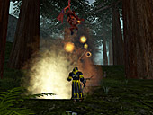 アビリティの習得方法も,ディアブロIIとほぼ同じ。つまりアビリティの習得は,レベルアップ時に獲得するアビリティポイントを割り振ることで行う。 またこのアビリティポイントを習得済みのアビリティに割り振れば,そのアビリティを強化できる。一つのアビリティに割り振れる最大ポイントは,10だ。 ディアブロIIのスキルシステムとUXOのディシプリン/アビリティとの最大の違いは,後者がツリー構造ではないことだろう。 UXOでは,一つのディシプリンにつき12種類のアビリティが用意されているのだが,これはさらに,三つずつ6段階のアビリティレベルに分かれている(※)。そこで例えば,バーバリアンのレベル1のアビリティ(つまり3種ある)に,合計で6ポイント割り振ると,もう一段階上のアビリティが使用可能になるというわけだ。 ※……つまりアビリティのスロットは3×6で,合計18種類ありそうだが,正式サービスリリース時にはそのうちの12種類のみ使え,残りの六つは将来的に追加される予定。18あるスロットのどこに12のアビリティが入るかは未定とのことだ。