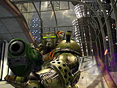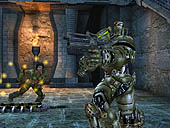 E3 2003で初公開された「Unreal Tournament 2004」は,毎年恒例でバージョンアップされていく"Unreal Tournamentシリーズ"最新作である。 ECTS会場では,実際にさまざまなシナリオにトライできるようになっており,筆者が実際に遊んでみたのは,広大な砂漠を突っ走る何台ものトラックの屋根を伝って,敵の陣地にあるミサイルを奪い取るというものだ。ゲームモードは"アサルト"。これは,参加プレイヤー達が二つのチームに分かれ,一方がアタック側に,もう一方がディフェンス側になるというもの。Unreal Tournament初期作品に含まれていたモードが,久々にカムバックするわけだ。 ゲームが開始してまず気づいたのが,落ち着いたトーンの英国風アクセントによるコメント音声が使用されているということ。前作「Unreal Tournament 2003」では底抜けに明るい声の評判が悪く,これはファンの意見を汲み取った変更点といえそうだ。 トラックを1台1台乗り越えていくのは,それなりに注意が必要で,落ちると当然死んでしまう。Unrealエンジンらしく,自分の肉体が千切れ飛ぶのを見ながらリスタートボタンを押すというシュールな光景は今作も健在だ。リスポーンポイントも変更できるので,敵陣に近い場所に移動させておくのが得策だろう。 このほかのマップには,ギリシャ風のものや中国風のものなど世界をテーマにしたものが多く,前作のマップすべてと合わせて相当数のマップが取り揃えられることになる。 全体的に大きいものが多いのは,今回から操縦可能になったバギー,スコーピオン,ヘルベンダー,マンタといった乗り物を使ったマルチプレイヤーモードを想定しているからだろう。 武器にもいくつかの変更点が見られ,強力過ぎたスナイパーライフルは,発射後の噴煙でしばらく視界が遮られるようになった。これで連射しにくくなったのはもちろん,この煙によってスナイパーの居場所が確認しやすくなっているかもしれない。 また,デュアルピストルに変わってデュアルアサルトライフルが登場し,さらにスパイダーマインという爆弾を搭載したクモ型ロボットが新しく登場した。スパイダーマインは,一定範囲内に物体が近寄るまで動かないので,敵の車両が通過するまで待ち伏せさせておくという戦法が採れるようになっている。 今回は確認できなかったが,ターレット(砲台)の使用も,ディフェンス用兵器としては大きな改良点である。 屋外マップの山の険しさ,乗り物の使用などが「Tribes 2」や「Halo」を連想させるが,独自の世界を築いているUnreal Toournamentは,ゲーム競技大会などでも大きく取り上げられていくことになるのではないだろうか。発売は,2003年11月頃の予定となっている。(奥谷海人) →E3 2003での「Unreal Tournament 2004」に関するNewsは,「こちら」 →「Unreal Tournament 2004」の当サイト内の記事一覧は,「こちら」