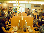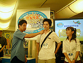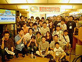 2003年8月31日(日)12:00〜渋谷のネットカフェNEWNEWで行われた「ポトリス全日本チャンピオンタッグマッチ 東日本エリア大会」。この大会はネット予選を勝ち抜いた18組36名によって競われた。 大会は18チームをA,B,Cのブロックにわけてリーグ戦を行い,各ブロックから1位と2位となったチームを選出。次に1位グループと2位グループのそれぞれのチームで三つ巴戦を行い,1〜3位/4〜6位を決定するというものだった。アイテムの制限や初ダブル禁止といったルールはなく,マップはランダム。先攻はジャンケンで決めることから,ゲーム開始前から熱の入った戦い(ジャンケン)が繰り広げられた。 決勝戦は男女の師弟コンビ"ぷしゃ",予選全勝の鯨ギルドの"不滅の鯨魂",仕事帰りのお父さんタッグの"ドリームナビ"で競われたが,マップが落ち面であるTemplerとなったため配置が大きく影響。先攻したチームによって最有力候補の"不滅の鯨魂"はほとんど何もできないまま負けてしまった。結局好位置をキープした"ぷしゃ"が優勝(写真右下)。ちなみに4位のチームは"もうこねぇよ"と読むらしい。 ゲームの対戦会というと,殺伐とした雰囲気で行われることも多いが,今回はそれほどでもなく,バンダイGVの島田氏&大谷氏の和やかなMCも手伝ってか,ほのぼのとした感じで進行した。また出場チームも,男女のペア,大学生仲間,仕事の同僚,女性チームなど,さまざまなチームが参加し,改めて「ポトリス2」は,多くの人がプレイしているんだな,という印象を受けた。さらに大会後もNEWNEWでは「ポトリス2」がプレイできたため,各チームとも親睦を深めた様子。 ちなみに韓国では「ポトリス」はコミュニケーションツールとしての人気も高く,「ポトリス」を通じて結婚したカップルが47組もいる。日本でも会員数は50万人を突破しており,コミュニケーションツールとしての地位を確立する日も,そう遠くはなさそうだ。(Murayama) ■決勝戦出場チーム 1位 ぷしゃ 2位 ドリームナビ 3位 不滅の鯨魂 4位 ヽ(`Д´)ノ 5位 Wild Speed 6位 たとー
