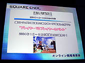 本日9月26日の午前11時より,幕張メッセのすぐ近くにあるホテル・ザ・マンハッタンにて,スクウェア・エニックスによる「オンライン戦略発表会」が行われた。 まず壇上に上ったのは,同社の代表取締役社長である和田洋一氏。現在のオンラインゲーム業界の状況や同社のオンラインゲーム事業への意気込みなどが語られたわけだが,まぁforGamer読者にとってはさほど面白い話ではないと思うので,いつものようにバッサリカット。ただ和田社長から,同社の"フラッグシップ"であるという「ファイナルファンタジーXI」の今後のスケジュールの発表があったので,それは紹介しておこう。 まず本日(9月26日),PC向けのオフィシャルベンチマークソフトの第2弾が世界同時公開された。これはすでに当サイトの「こちら」に掲載したので,ぜひご確認を。 それ以降のスケジュールは,以下の通り。 <2003年10月中> ・高ランクミッション,各国クエストなどの追加 ・「くつろいで座る」などの新モーションを実装 ・新コール音追加 ・ほか,多数 ・北米でWindows版を発売,10月末にサービス開始 <2003年12月> ・未公開の「裏エリア」の解放 ・レベル上限を75に引き上げ <2004年1〜3月> ・コンクエスト(国家間の勢力争い)として,対プレイヤー戦を実装 ・北米で,PlayStation2版を発売 裏エリアというのは,通常のエリアに似た別の世界だという。見た感じはほぼ同じなんだけど,どこか違う。例えば,"いてはいけないモンスター"が登場するのだという。 また多くの人が気になるのが,対人戦の導入だろう。といってもむやみやたらとPK(Player Killing)ができるわけではなく,所属する国家と,敵対する国家との戦いという形でのサポートとなる。 ところで北米で発売されるPlayStation2版に関して,和田社長から「もしかしたら,ハードディスクにプリインストールという形で販売するかもしれない」という発言があった。というのも,コンシューマユーザーはゲームのインストールという行為に不慣れで,ゲームを始める前からつまずいてしまう人が少なくないから。確かに,つなげてすぐ遊べるのであれば,この手のゲームの初心者でも安心だろう。 ところでこのあと,和田社長からPlayOnlineの"三つのマルチ"についての話があった。これも面白いので,軽く紹介しておこう。一つは,プラットフォームのマルチ。つまりPC,PlayStation2,そして携帯電話といったプラットフォームに関係なく,PlayOnlineのサービスを受けられるようにしたいという。具体的には,携帯電話でファイナルファンタジーXIのチャットに参加したり,フレンドリストをチェックしたり,ゲーム中の簡単な指示を出せたりするようになるとのことだ。 次は,国境を越えたサービスという意味でのマルチ。スケジュールを見ての通り,近い内に北米でサービスが始まるが,今後韓国など,世界中のオンラインゲームが盛んな国にも広げていくという。 そして最後は,複数のゲーム間の垣根を越えたコミュニティ,という意味のマルチ。まぁこれに関してはPlayOnlineのスタート当時から話があったのだが,実際問題,本格的なゲームがファイナルファンタジーXIしかなかったので,絵に描いた餅となっていたわけだ。しかしこの発表会でいくつかの新作が発表され,ついにこの構想が実現するというわけ。 さて。新しく発表されたタイトルについては,次のNewsをお待ちあれ。(Iwahama) →「ファイナルファンタジーXI ジラートの幻影」の当サイト内の記事一覧は,「こちら」 © 2002, 2003 SQUARE ENIX CO., LTD. All Rights Reserved.