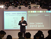 「2004 Gravity経営ビジョン発表会」を開催した。このイベントでは同社のKim, Jung Ryul会長より,2003年は373億ウォン(約37億3千万円)の売り上げで,144億ウォン(約14億円)経営利益をあげたと発表された。ちなみに内訳として海外で207億ウォン(約20億円),韓国内では165億ウォン(約16億円)だったらしい。続けて