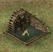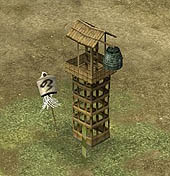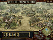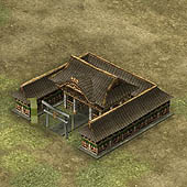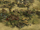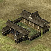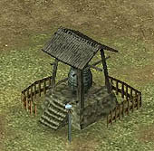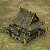 ■内政:施設追加&領地エディタでより町並みが美しく! 内政にも,シリーズ初となるユニークな機能が追加されている。その名も「領地エディタ」といい,箱庭ゲームの要素をもっている天下創世の"領地"を,自由自在に編集できるというなんとも嬉しい機能だ。 また,これまで自動で行われていた天守や城郭の改築,そして町並み施設の一つずつ建設が,コマンド化されている。これによってどのようにゲーム性が変わるのかも気になるところである。 施設もずいぶんと追加されている。写真右が,"大八幡"。そしてこの下が,左から順に,"御坊" "大名屋敷" "庄屋" "水車" "土蔵" "鐘楼" "商会" "火の見櫓" "番所"。これらの施設ができると,領地にどのような効果があるのだろうか?