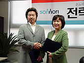 韓国の人気デベロッパSOFTMAXとSONNORIが提携(2004/3/24) Text by Kim Dong Wook特派員 韓国の代表的なPCゲーム開発会社であるSOFTMAX社とSONNORI社は,3月23日,オンラインゲーム開発とパブリッシングに関して業務提携すると発表した。 SOFTMAXは全シリーズをとおして100万本以上世に出た"創世紀伝シリーズ"を,SONNORI社は「Astonisia Story」や「Acturus」といった人気作を要する,両社共に韓国の代表的な開発会社といえる。 業務提携後の最初の共同プロジェクトは,ゲームポータル「NORIMAX」の運営だ。 NORIMAXは,SOFTMAXがサービス中のコミュニティポータルサイト「4Leaf」を通じて公開される予定。2004年中をメドに,両社の共同開発によるオンラインゲームのサービスを開始する予定とのことだ。 NORIMAXで公開するコンテンツとしては,人気クリエーターのLee Won Sool氏(SONNORI社長)とChoi Yeon Gyu氏(SOFTMAX社開発室長)によるゲームコラム,ゲーマーによる書き込みの可能なゲーム小説などが用意される予定で,この場所をオンライン上の"遊び場"として提供していきたいとのこと。 今回のSOFTMAX社とSONNORI社の合併は,日本のスクウェアとエニックスの合併に匹敵するほど,韓国のゲーム業界にインパクトを与える出来事だ。今回のヒットメーカー同士の提携は,業界はもとより,広くゲーマーの注目を集めるに違いない。