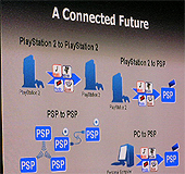 PSPはPS2とはもちろん,PCともなんらかの連携が可能なようだ。ポリゴン処理能力はPS2以上といわれるPSPを持ち寄って友達同士で通信機能を行い,さらにその場にPCが絡んでくるとなれば,期待せずにはいられないだろう。それならば,この発表でハウス氏が口にした「ゲームの新革命」が起こり得るというものだ。