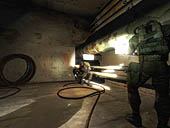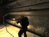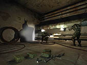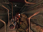 このマップの中央に大きなレンガ塔があり,その周囲には3階建てくらいのビルが南北に長く連なっている。期待していたよりもキャラクターの移動速度が速くなく,広場でスナイパーに捕まると逃げるのは至難のわざのような気がする。ただ,飛来している弾丸はオレンジ色に着色されて見えやすいので,敵の方向は確認しやすい。 例えばUnreal Tounament 2004のように敵キャラクターの頭上にマークがつけられていたりする予定はなく,背後からうまく忍び寄ったもの,キャンパー,そしてスナイパーのようなプレイスタイルに向いている気がした。焦って動き回ったり目立つ場所に出た途端に,ほかのプレイヤーの餌食になるだろう。 グラフィックス部分で大幅な改良があったとはいえ,タンクのテクスチャが平たく平凡なものだったり,まだまだ修正されるべき部分も多いようだ。しかし,ほかのFPSとはひと味ふた味も異なる切り口で,このジャンルを盛り上げてくれそうな気配も十分である。(奥谷海人) →「S.T.A.L.K.E.R.:Shadow of Chernobyl」の記事一覧は,「こちら」 (C)2004 GSC Game World. All rights reserved