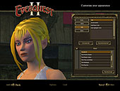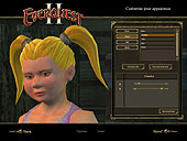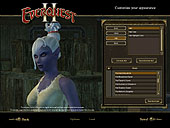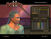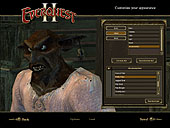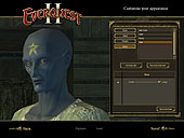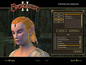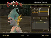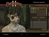 というキャラクターが作れるのだが(Froglokはスペースこそ用意されているものの使えない),"これしかできない"と思うと,結構ゆっくり楽しめる。 キャラクターのカスタマイズはStar Wars Galaxies仕様で,色々な部位にスライダーバーで自在に変更を加えられる。単に目の形や鼻の高さや髪の色,という部分ばかりでなく, Ratonga(ネズミ) 眼帯やメガネなどのアクセサリ,体毛の模様,耳の長さ Gnome 年齢(肌の張りが変わる) など,それぞれの種族に応じた独特のカスタマイズ項目が,非常に面白い。まぁ目の色の基本が青だったりして,さすが欧米人仕様であることを痛感するわけだが……。