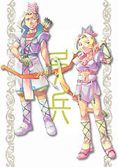 ■弓兵(ゆみへい)……写真上段左 弓や銃器など,遠距離攻撃を得意とする職業。武兵と同様に戦闘を得意とするわけだが,彼らは血を見ることは好まないという。門下生や武兵が興奮して戦うはるか後ろで,冷静に次々と敵を倒していくのが,彼ら弓兵である。