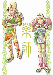 ■薬師(くすし)……写真下段右 人間用の装備品の修復や,能力を増強する薬を作ることができる職業。また基本的な戦闘能力はもっていて,各属性に対応した攻撃技能も学べるようだ。職業柄,鉱物や植物についての知識はかなり豊富で,農民や鉱山労働者の良き相談役だとか。