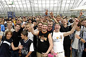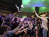 2004年のGame Conventionへの入場者が10万人を突破したと発表されたが,単純に考えればライプチヒのかなりの人口がメッセに集まっていることになる。家族連れよりも中高生が圧倒的に多いように見えるので,夏休みのイベントとして受け入れられているのかもしれない。期間中はホテルの占有率も高いので,実際には郊外やドイツ各地から駆けつけているゲーマーも多いのだろう。 アメリカ人のゲーマーを見慣れているからかもしれないが,ドイツのゲーマーはごく普通に見える。アメリカやイギリス,フランスではすっかり浸透している「オタクカルチャー」も伝わっていないようで,これだけの青少年が集まっているのにアニメのTシャツを着ていたりコスプレしていたりする人は皆無だ。「公認された遊び人」「謹賀新年」などと書かれたTシャツは見かけたが,ライプチヒの人達がどれだけ日本を知っているのか,興味を持っているのかは疑わしい。