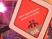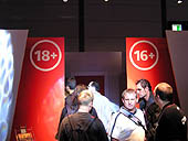 ●規制だらけの展示ソフト ゲームで表現されるバイオレンスの規制が厳しいドイツらしく,多くのブースで対象年齢が書かれた看板が掲げられている。会場一番人気の「DOOM 3」は販売不可能,「Shadow of Chelnobyl」は18禁,「Prince of Percia 2」だって14禁。中には12禁看板もある