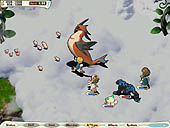 乗り物といえば,下の画像右も要注目。画面中央上部にいる女の子が,やはり何かに乗っているのが分かる。パッと見"空飛ぶ絨毯"にも見えるが,よくよく見るとこれもモンスターっぽい。拡張パックのテーマどおり,プレイヤーキャラクターもモンスターに乗って空を飛べるのだろう。新たなスキルなのか,それともモンスター固有の能力(UOの馬みたいに)で誰でも乗れるものなのか。そこまでは分からないが,追って明らかになってくるだろう(そういえば,公開された画面写真を見ると,新モンスターがたくさん……)。
