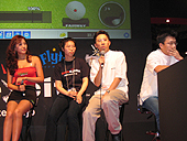マイクを持っているのが,OnNetのKim氏。一番左が韓国ショットオンラインのイメージキャラクターの李さん