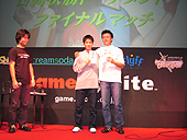 「エキサイト選手権 東京ゲームショウカップ」は,日本と韓国それぞれの予選を勝ち抜いた代表が,優勝賞金50万円(準優勝20万円)を賭けて勝負に臨むというイベント。日本予選は9月8日より一週間に渡って実施されており,見事勝利をもぎ取ったGift選手が日本代表として東京ゲームショウに来場している。 対する韓国側は,なんと1万人もの参加者の中から勝ち抜いたという,FairyPeanuts選手が来場。1万人もの人数が参加し,予選期間も3か月間あったということで,韓国内でもかなり話題になった模様。そのためか,同イベントにはFairyPeanuts選手の取材のために多数の韓国テレビ局が撮影を行っていたのが印象的だった