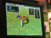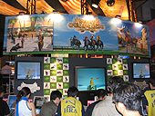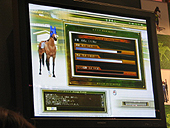 「DERBY OWNERS CLUB ONLINE」のブースには,プレイアブルなバージョンが展示されており,馬を連れて歩き回ったり,レースなどを体験できるようになっていた。ただインタフェースなどは若干違うものの,東京ゲームショウ2003に展示されていたものと非常に似ていたので,近くのスタッフの人に早速質問。そこで分かったことは,以下の通り。