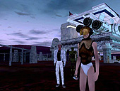 残念ながらプレイアブルな展示はなしで,頭上に設置されたモニターでムービーを上映しているのみ。ちょっと,探さないと気づかないかもしれないし,期待していた人には肩透かしかもしれない。ただし会場ではβテストの参加登録コードが配布されるので,SWG目当ての人はぜひとも会場を訪れよう。 なお,SWGに関しては[TGS2004#43]「こちら」のインタビュー記事に詳しい。主に日本展開と「ジャンプ・トゥ・ライトスピード」についての話となっているので,ぜひチェックしてもらいたい。