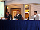 左から,ハドソン代表取締役工藤浩氏,ビー・ビー・サーブ代表取締役孫泰蔵,そしてハドソンのMoE担当チーフプランナー伊藤丈夫氏