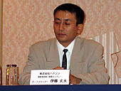 その工藤氏に紹介される形で,続いて孫泰蔵が壇上に登った。孫泰蔵が話したのは,具体的な業務提携の内容について。 ご存じの通りソフトバンクは,元々ソフトの流通をメインの仕事としてきた会社である。BBサーブは,孫泰蔵の兄である孫正義が率いるソフトバンクグループの中で,ブロードバンド時代の新しい流通を担っていきたいという。泰蔵はまず,従来の流通がもっていた三つの機能を挙げた。