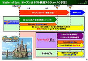 そしてこの三つの機能は,オンラインの時代でも必要だろうと話し,販売促進機能の例としてあげたのが,4GamerやBB Gamesといったゲームサイト,そして全国に1500店以上の加盟店をもつインターネットカフェを利用した販促だ。流通/配荷は,グループ企業の提供する「Yahoo! BB」などのネット網を使って行う。 最後の金融機能も必要だろうということで作ったというのが,真・三國無双BBの発表会でも紹介されていた,"#8"(ナンバーエイト)というプロジェクトチームである。このチームはこれまでゲームのメディアに携わっていた人,開発に携わっていた人,運営に携わっていた人,そしてプロモーションに携わっていた人など,この道のプロパー達で構成されていて,金融的な機能を持つだけでなく投資/共同開発も行っていく。 #8の投資実績としては真・三國無双BBが挙げられるが,こちらのサービスは2006年春と,ずいぶん先。MoEは,この#8がメーカー(今回の場合はハドソン)と一緒に,ゲーム内容,サービス内容,運営方法などさまざまな問題に対してディスカッションしながら作り上げた,初の公開タイトルとなるのだ。 具体的な業務内容については,販売促進/プロモーションおよび課金/決済をBBサーブが行い,継続的な開発はハドソンと,それを支援する形で#8が行う。またGMなどゲーム運営はハドソンが行うとのこと。