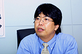 ●平田 雅一氏 日立製作所の情報・通信グループアウトソーシング事業部 ビジネスイノベーション本部所属。2001年より日立製作所が行っていた,ゲームポータル「LevelUp」の試験サービスに携わっていた人だ。オンラインゲームの知識もかなりのもので,Granadoのゲームシステムにも明るい。今回は,ハンビットと日立製作所の関係について答えてもらいつつ,専門用語が飛び交うなか戸惑う通訳さんに,筆者の言葉を通訳する(?)という,少し面倒なこともしてもらった。お手数をおかけしました。