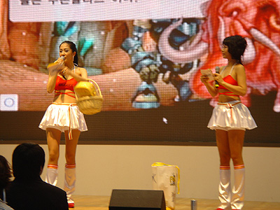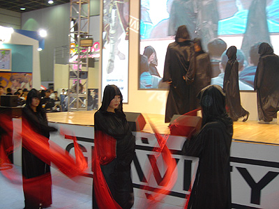 Gravityブースは,以前のニュース「こちら」でもお伝えしたように,「Ragnarok 2」(以下,RO2)初公開の場ということもあり,来場者やプレスの関心も高かったようだ。 2005年の韓国オンラインゲーム市場において,3DとなったRO2は,"Ragnarok Onlineの父"ことキム・ハッキュ(Kim Hakkyu)氏の新作「Granado Espada」と正面対決となる。一体どんな勝負を見せてくれるのか,今から楽しみだ。