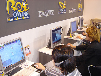 Gravity社がパブリッシングを行っている「R.O.S.E. Online」も,Gravityブース内で積極的な広報活動が展開されていた。同社は"多くの言葉を費やすよりも,とにかく実際に体験させる"という戦略で,"ミニPC Bang"とでも表現できそうなスペースを用意。これには多くの来場者が足を止めていたようだ。