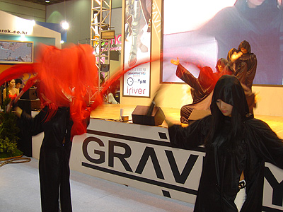 例年KAMEXで最も大きいスペースを確保するGravity社は,今年(2004年)も60コマ分という大規模のブースで出展しており,"KAMEXの店長"(?)らしさを見せていた。