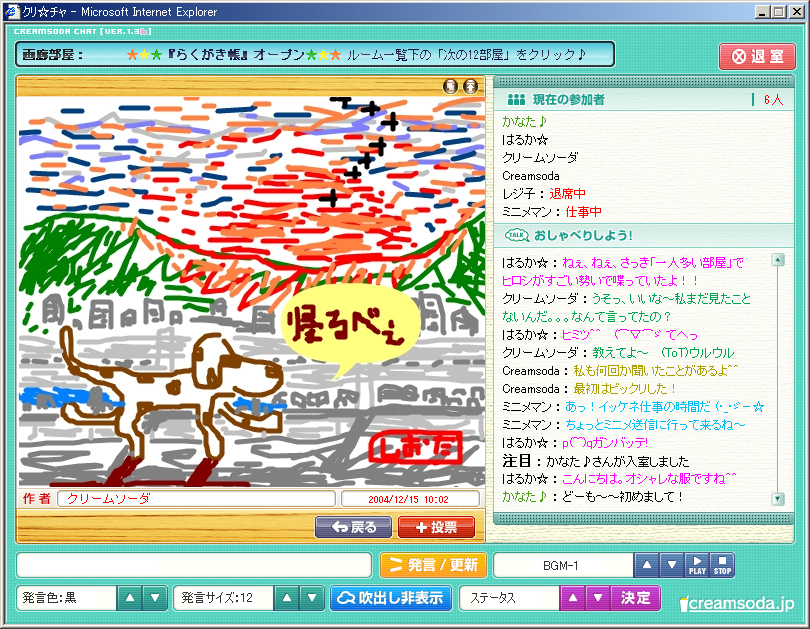 カジュアルゲームサイト「Creamsoda」(クリームソーダ)を運営するエキサイトは,Creamsoda内のアバターチャットサービス「クリ☆チャ」の"らくがき帳部屋"で,2004年12月15日から「らくがき展示場」を新設する。