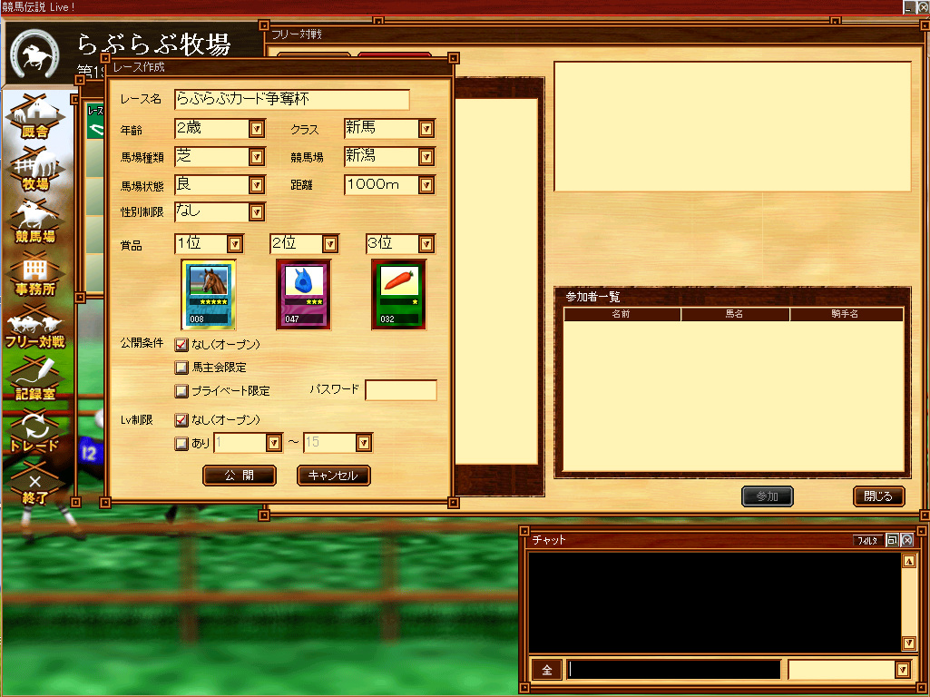「競馬伝説Live!」で6番めのサーバー稼動&ゲーム内掲示板オープン
