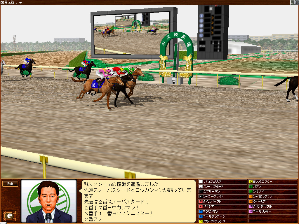 また本日,ゲーム内に掲示板が追加された。掲示板は雑談用の「ふれあいBBS」,質問用の「教えてBBS」,馬主の交流を目的とした「馬主会BBS」の3種類がそれぞれのサーバーに設置されている。各掲示板を利用して,競馬仲間を増やしたり,競走馬の育成方法を学んだりするといいだろう。(Seirou)
