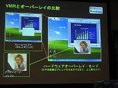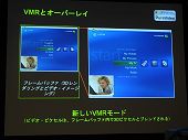 オーバーレイ方式とビデオミキシングレンダー方式の違い。同一のフレームバッファでの処理をGPUとビデオプロセッサで分担する。帯域幅的にも有利だという