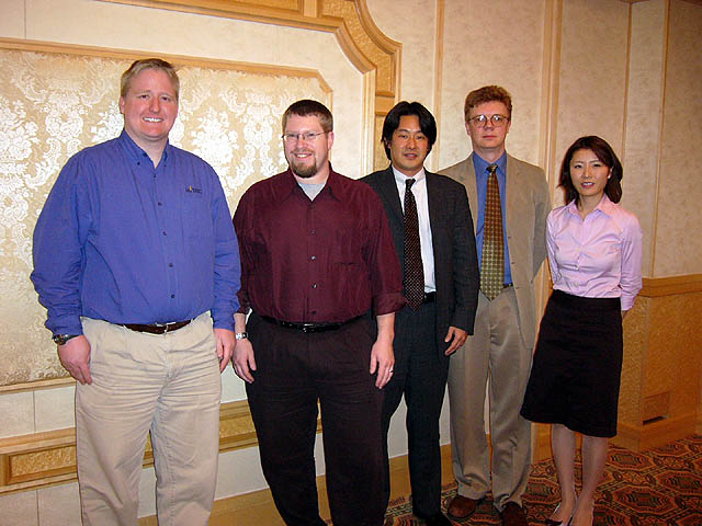 インタビュー時には,発表会で登壇した全メンバーが揃っていた。左からAaron Peterson氏,Matt Firor氏,国枝信吾(ビー・ビー・サーブ),Eugene Evans氏,Ayaka Hahn氏