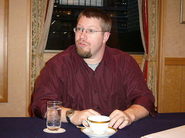 2005年1月13日,「ダーク・エイジ・オブ・キャメロット 日本語版」に関して,ビー・ビー・サーブとMythic Entertainmentが業務提携することが発表された。記者会見の様子は「こちら」を見てもらうとして,ここでは記者会見後にエグゼクティブプロデューサーのMatt Firor氏,マーケティング・ディレクターのEugene Evans氏に話を聞けたので,その様子をお伝えしよう。