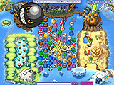 トゥインキーは,フィールドに置かれたブロックを,絵柄を三つ以上揃えることで消していくパズルゲーム。現在,マルチ向けにはレーシング,サバイバル,アドベンチャーの3モードが用意されていて,今回実装されたシングルモードではサバイバルモードがプレイできる。 ちなみにサバイバルモードは,フィールドのブロックが一杯になるにつれて膨らむ風船を破裂させないようにするというもの。下から1列ずつブロックが上がってくるうえ,天井からも石のブロックが落ちてくるので,とっさの判断も重要となる。