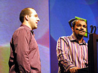 GDCを運営するCMP社のコンファレンス・ディレクターを務めるジャミル・モレディナ(Jamil Moledina/写真左)氏と,IGDA代表ジェイソン・デラ・ロカ(Jason Della Rocca)氏の言葉で,チョイスアワードが開幕する