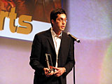 写真下段左:テクノロジ賞の受賞で,「一人だけ壇上に上がるのは開発部の仲間に申し訳ない」と謙遜する,Valve Software社のブライアン・ジャコブソン氏