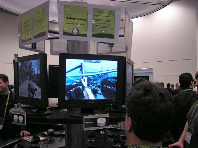 今年のエキスポは,NVIDIA社,ATI社,Intel社の各ブースでのゲームデモが少なく,ちょっぴり寂しい感じだ。しかし,目ぼしいタイトルがなかったわけでもない。その中で一番目立っていたのが,ロサンゼルスをベースにするNaked Sky Entertainment社の処女作「RoboHordes」。RoboHordesは,独立系の会社や学生によるゲームソフトを展示しているIGF(Independent Game Festival)にもエントリーしている作品である。 IGFには,資本金2500万円以下などの参加資格があるらしいが,Naked Sky Entertainment社はRoboHordesの制作でUnreal Engine 3を正式にライセンスしている。しかも,Intel社やNVIDIA社のスポンサードを獲得できており,IGF出品作品の中でも最もプロ化している開発チームの一つといえるだろう。 Intel社との提携でPentium Extreme Editionのデュアルコア・プロセッサにオプティマイズしており,その文句なしの技術力に,アマチュア臭さは微塵も感じられない。ほかにもGDC期間中にLuxology社の3Dモデリングツール「modo 102」を採用すると発表しており,非常に元気のいい若手チームであるのは間違いないだろう。 同社社長のティエン・ムー(Tien Mu)氏も,「実は,3人でチームをスタートさせて3年になるんだけど,ようやくここに来てうまく回り始めたことを誇りに思っているよ」と,筆者に対して前向きなコメントを聞かせてくれた。