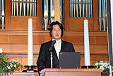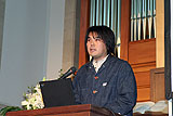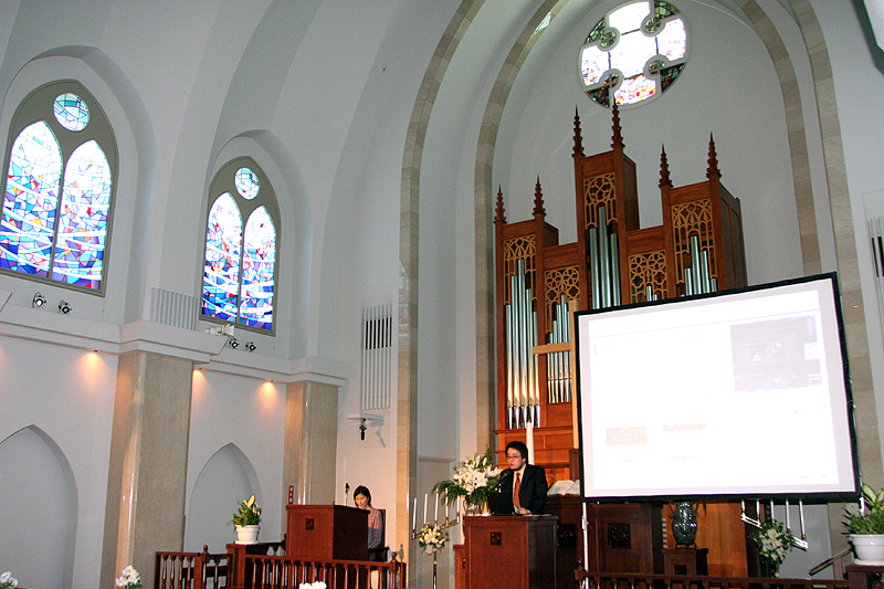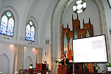 会場が東京・渋谷のアイビーホール青学会館のチャペルということで,普段とは異なる雰囲気での発表会をある程度予想していたが,会場を一瞥してみると,"儀式に使われている場所"としての重厚感,荘厳さは想像以上のものだった。個人的に一つだけ残念だったのが,チャペルにある巨大なパイプオルガンにスクリーンがかぶって隠れていた配置。せっかくだから全体を見せておいてほしかった。しかし,今回の趣旨はベルアイルの発表会だし,仕方のないところか。