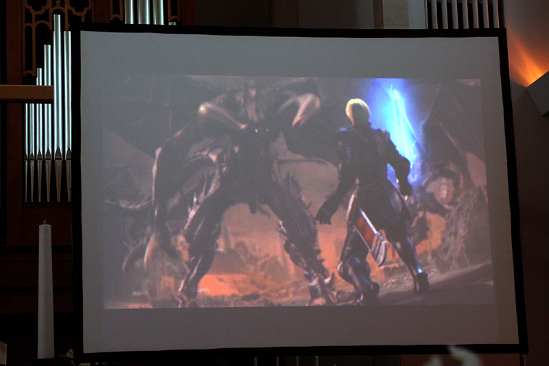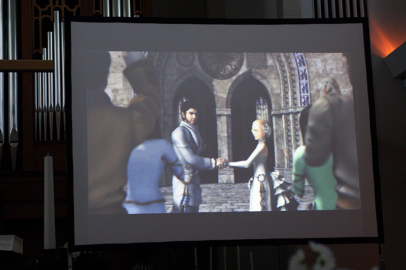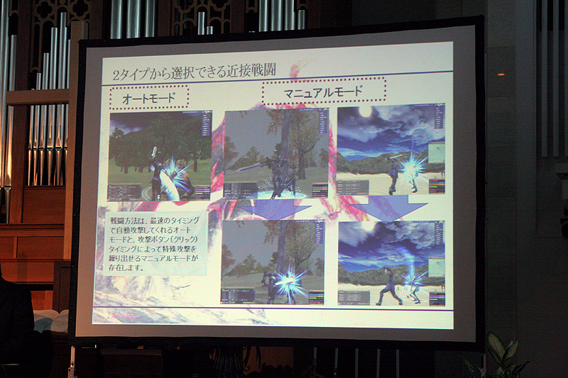 最後に質疑応答の時間が設けられ,ネットカフェ展開などの質問が投げかけられた。これにはビー・ビー・サーブの国枝が応答し,ネットカフェ展開は視野に入れているが,どのような形で展開していくかが決定していないので,現在は具体的な部分は答えられないという回答に留まった。 発表会全体を通してみると,ゲームについての解説が淡々と進み,"会"自体にメリハリがなかったのが残念なところ。特殊な会場のチャペルならではの演出や発表会ならではの情報などがあれば,もっと面白かったかもしれない。
