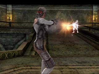 右:"ニーリングショットスタンス"。地面に片ひざをついた状態で敵に照準を合わせて攻撃する。スタンディングショットに比べて攻撃力と命中率,連射力(速度)は高いが,移動が不可能(移動するにはスタンディングショットスタンスに変更しなければならない)