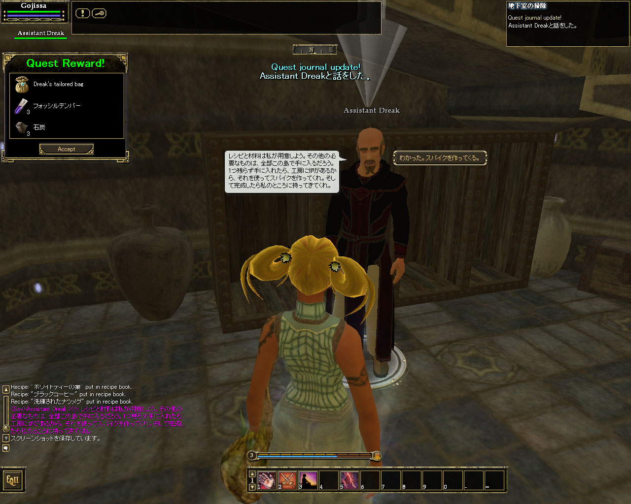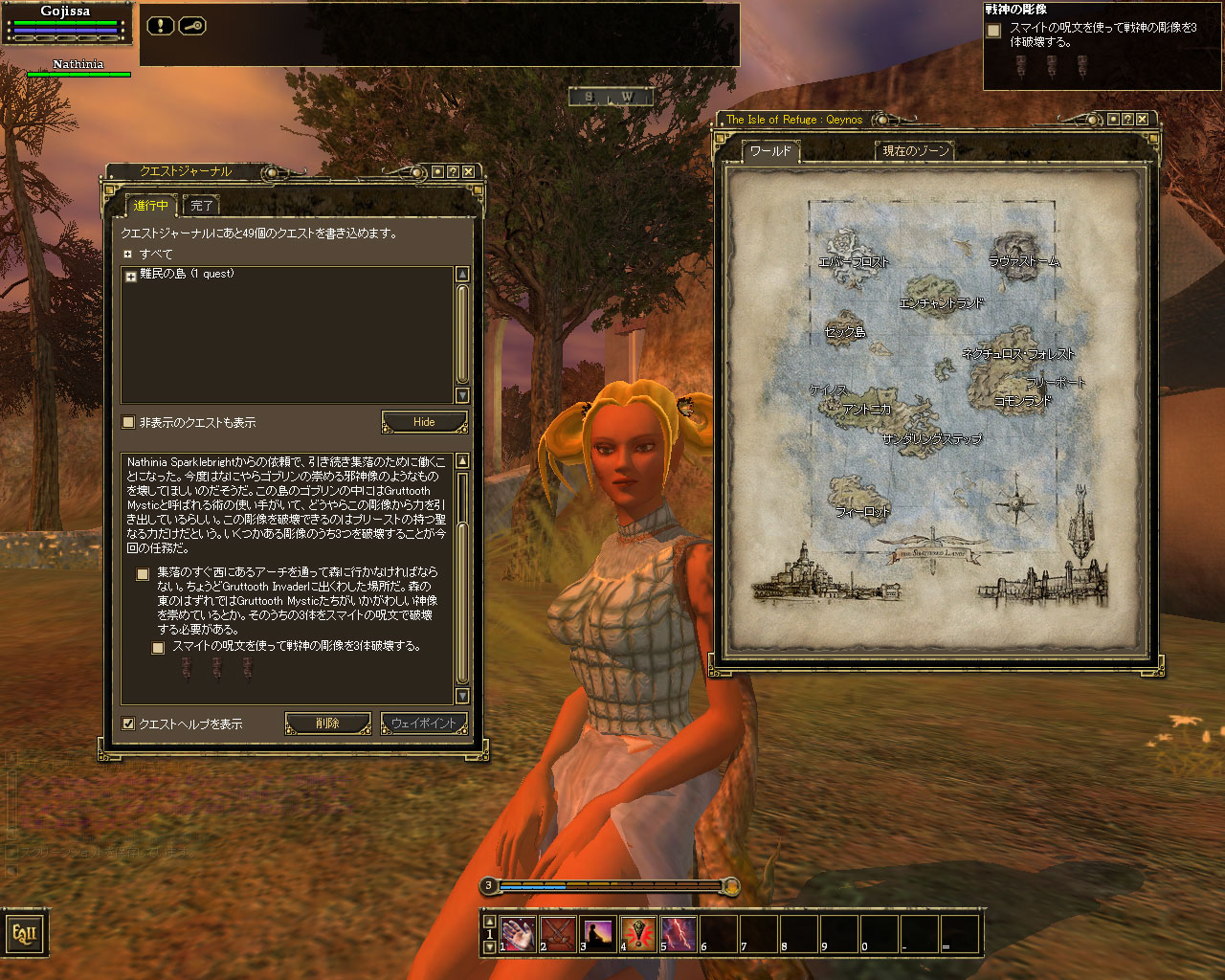 Sundi氏のナビゲートで"ほぼβテスト版"のEQIIをザックリ見てきたわけだが,少なくともこの日見た部分に関しては,4月6日にリリースしてもほぼ問題ないレベルと言っていいだろう。氏のいう通り,インタフェース部分は初心者でも分かりそうな部分を除いて,そしてクエスト部分は重点的に日本語化が行われているようだ。