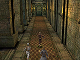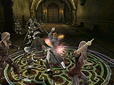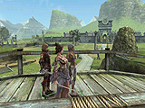初めて動くGEを見た印象は,ズバリ"公開されているスクリーンショットに偽りはなかった"である。 中世ヨーロッパ風のキャラクターコスチューム,石造りの街,宮廷を思わせる家屋室内の装飾,また野外のグラフィックスでは,目前の木や葉(一枚一枚がポリゴンだ),遠めに見る山々,微妙に流れる空の雲まで,トータルで見ると本作のグラフィックスクオリティは一級と言い切ってもいいだろう。