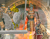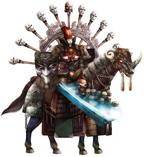 また正式サービス開始に伴い,大規模アップデートも実施される。中でも目玉は「主神戦」が実装されることだ。これは三主神の名のもと,三つ巴の戦いが繰り広げられるというもので,聖地に存在する九つの「カーラ」と呼ばれる宝玉を各勢力で奪い合い,5個のカーラを支配した主神陣営が勝利となる。 主神戦で勝利した主神陣営には「チャトランガ」への道が開かれ,新たな試練と宝物を得るチャンスが与えられる。そこでは神軍の部隊,ほかの主神陣営の使徒,王の居室を守る"玄武",そして"羅剛"に挑むことになる。 さらに,かつて神々が遊戯した場所ともいわれる「カーリーの奈落」が追加。これは主神別,レベル別に分かれたマップで,1日に数回,決まった時間に1時間だけ滞在できる特殊な場所だ。そこに巣食うマーラ達は通常よりも手強く,そのぶんプラーナや収集品も通常のフィールドより多く得られる。レベル区分は30〜45,46〜61,61以上の三つで,これが主神別に分かれているので,計九つの奈落が存在することになる。 このほかにも「流配地」での新クエスト,新マップ「始皇帝陵」,新システム"アシュラム戦" "主神スキル" "カースト"など,さまざまなアップデートが行われるようだ。