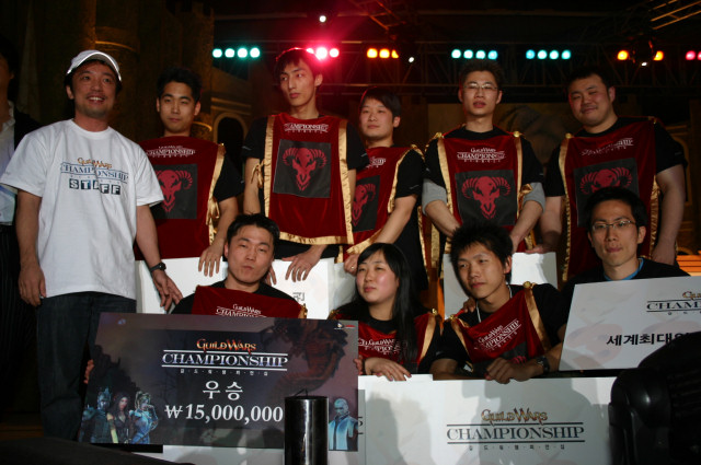 ソウルのセントラルシティに500人のプレイヤーを集めて行われたこのイベントには,"芸能人ゲーム団"に所属するタレントが対戦を披露したほか,MCとしてお笑いタレントも出演し,会場を大いに盛り上げていた。 大会には,1か月におよぶ予選を通じて選ばれた8チームが参戦して熱いバトルを繰り広げ,"War Machineギルド"が優勝(彼らは2月に行われたギルド招待戦でも優勝している)。賞金1500万ウォン(約150万円)と,5月にアメリカで開催される"E3 2005"見学チケット,そしてE3 2005でアメリカ代表,ヨーロッパ代表を交えて開催される予定のGuild Wars世界大会シード権を獲得した。