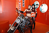 写真右:ROOM18はかなり暗かったので,このカットはATIブースで撮影。RUBYのコスプレをした美女がバイクにまたがってポーズを決めてくれた