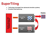 (1)究極の3D性能:理論値で2倍 (2)究極の描画品質:カード1枚時に対して2倍のアンチエイリアス描画品質を,速度低下なしで (3)究極の互換性:3Dアプリケーションのタイプを選ばず,確実にパフォーマンスが向上 (4)究極の柔軟性:ビデオカード1枚のシステムを,簡単かつ制限なしで2ビデオカード仕様へアップグレード