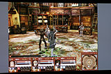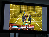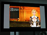 これは平田氏によって何気なく紹介されたものの,画面も合わせて実は初公開のシーン。ここはいわゆるトレーニングルームのような仕様になっており,中世ヨーロッパをベースとするGEにしては意外なデザインで,罫線の引かれた"キューブ"で構成されたバーチャルな空間である。元々GEの操作体系はシンプルなため,複雑な学習は必要としないはずだが,このチュートリアルでは,リーダーの変更やドロップアイテムの拾い方などを学ぶことができるらしい。