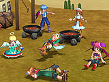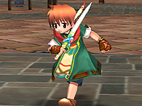 既報のとおりグラフィックスは,トゥーンレンダリングを用いたアニメ調の可愛らしいデザイン。全体的に見ると丸みを帯びてはいるが,毛先や装備品の端などの尖った部分も目立ち,キャラクターの立ち姿は思ったよりもシャープだ。キャラクターにはセルフシャドウなどがキチンと描かれているため,トゥーンレンダリングにありがちな画面の安っぽさはあまり感じられない。ちなみに影は,PCのスペックに応じて,なし→丸影→投射テクスチャマッピングとクオリティを変化させられるとのことだ。